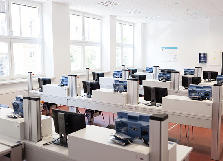 Vyučující tak má vždy perfektní přehled o dění v místnosti, ať už z katedry, tak z prostoru učebny. Studenti zároveň vždy dobře vidí vyučujícího i plátno pro projektor.